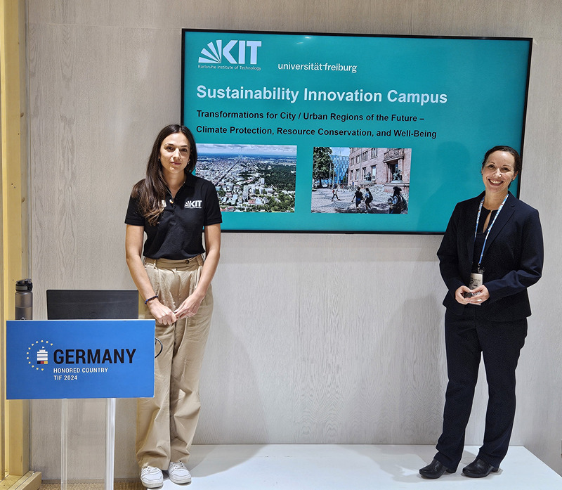 Vom 07.-15.09. 2024 fand in Griechenland die Thessaloniki International Fair 2024 statt und das KIT war mit einem Stand und in vielen Vorträgen und Podiumsdiskussionen vertreten. Am Thementag zu Nachhaltigkeit und Erneuerbaren Energien (10.09.2024) hatte Miriam Jordan die Gelegenheit, den ICN einem internationalen Publikum vorzustellen. Sie präsentierte erst den ICN und seine inhaltlichen Zielsetzungen und berichtete anschließend über die einzelnen Projekte bevor sie an Zoe Petridis aus dem Institut für Technikfolgenabschätzung und Systemanalyse (ITAS) übergab, die mehr zu dem Pilotprojekt ZUKAMAS und zu thematisch eng verbundenen Projekten am KIT erzählte.