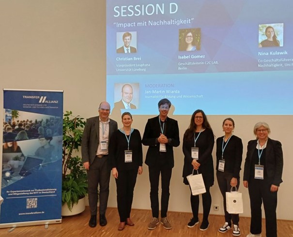 Am 7. Mai nahm Dr. Nina Kulawik für den ICN am Panel „Impact mit Nachhaltigkeit“ bei der TransferAllianz Konferenz teil. Die Session befasste sich mit der Gestaltung von Transferaktivitäten in Bezug auf Nachhaltigkeit und der Auswahl dafür geeigneter Nachhaltigkeitskonzepte. Die Diskussion zeigte, warum es sich für Wissenschaftseinrichtungen lohnt, das Thema Nachhaltigkeit im Transfer prominent zu setzen. Dabei ging es insbesondere um die wichtige Rolle von Schnittstellen wie dem ICN und die Bedeutung von Transdisziplinarität beim Transfer von Wissen in Wissenschaft und Gesellschaft. Weitere Speaker*innen waren Christian Brei, Vizepräsident der Leuphana Universität Lüneburg, und Isabel Gomez, Geschäftsleiterin C2C LAB, Berlin. Auf der Konferenz konnte der ICN einem breiten Publikum aus Wissenschaft und Gesellschaft vorgestellt und es konnten wertvolle Kontakte zu anderen Schnittstellen geknüpft werden.